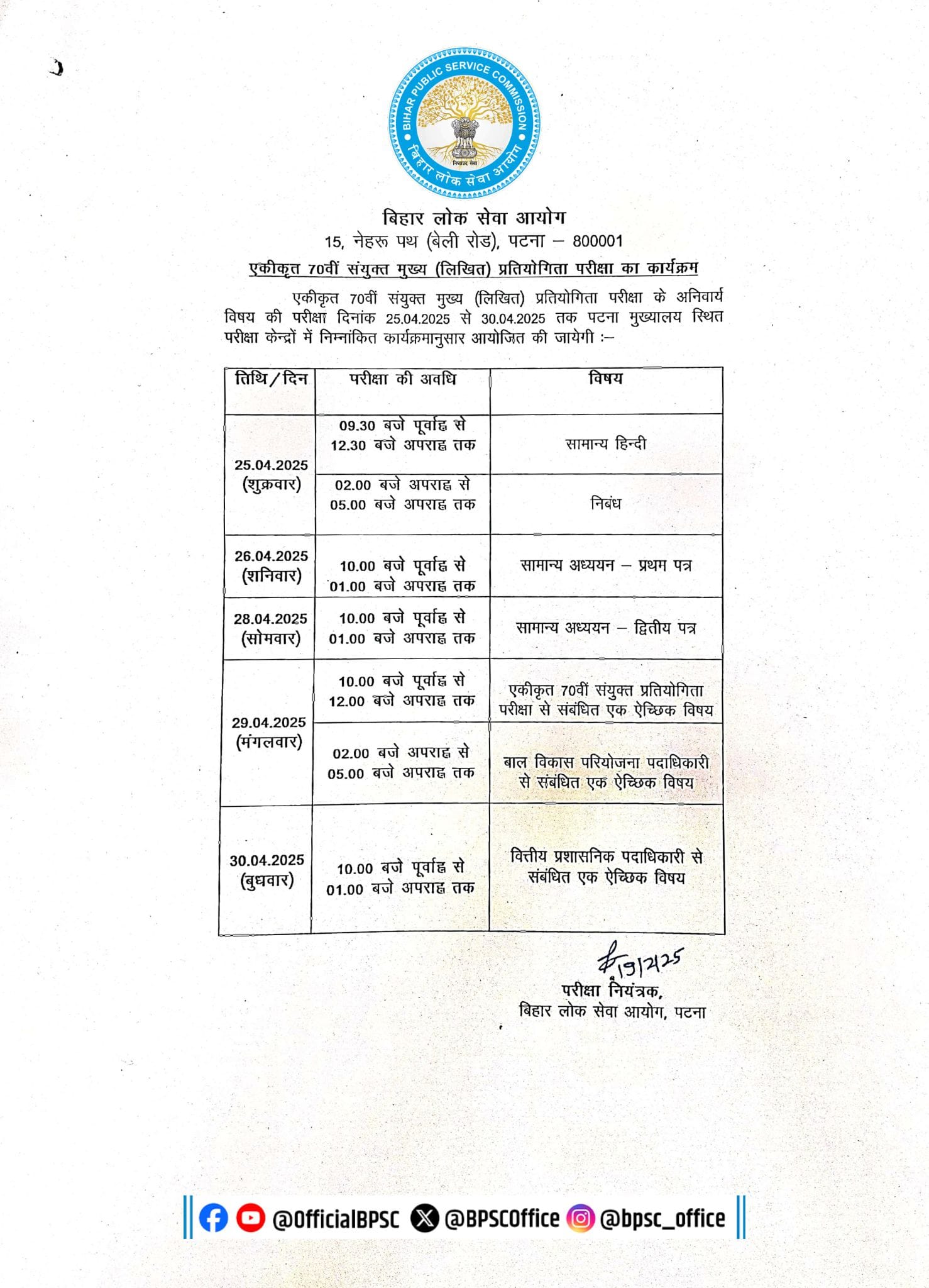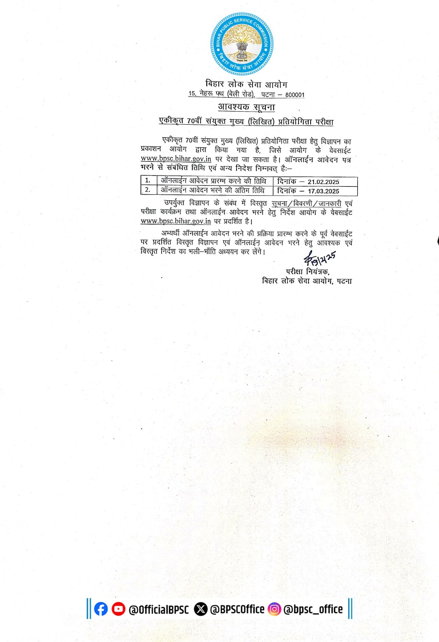 BPSC 70th Interview Letter 2026 – Out