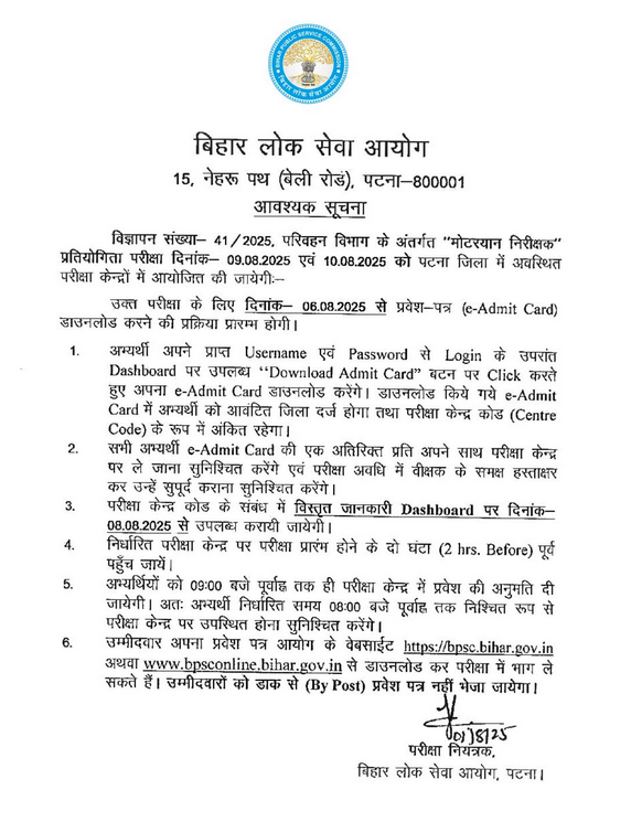 - Candidates are advised to confirm from the Bihar BPSC official website.