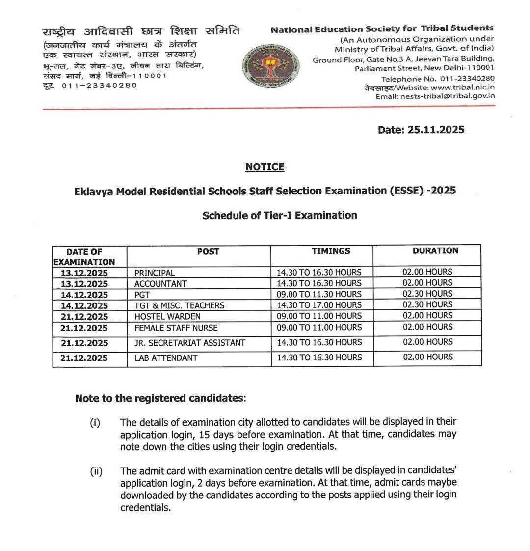 Ek Lavya Model Residential School (EMRS) NESTS, has released Final Answer Key on official website for the recruitment of Teaching/ Non Teaching Post. The exam was conducted in 13 - 21 December 2025, and the last date to submit the application form was 28 October 2025. Candidates can check their Final Answer Key using their Enrollment Number, Registration Number, or Date of Birth by logging into the portal. The direct link is provided below. (Advt.No. NESTS/Adv/2025/01)