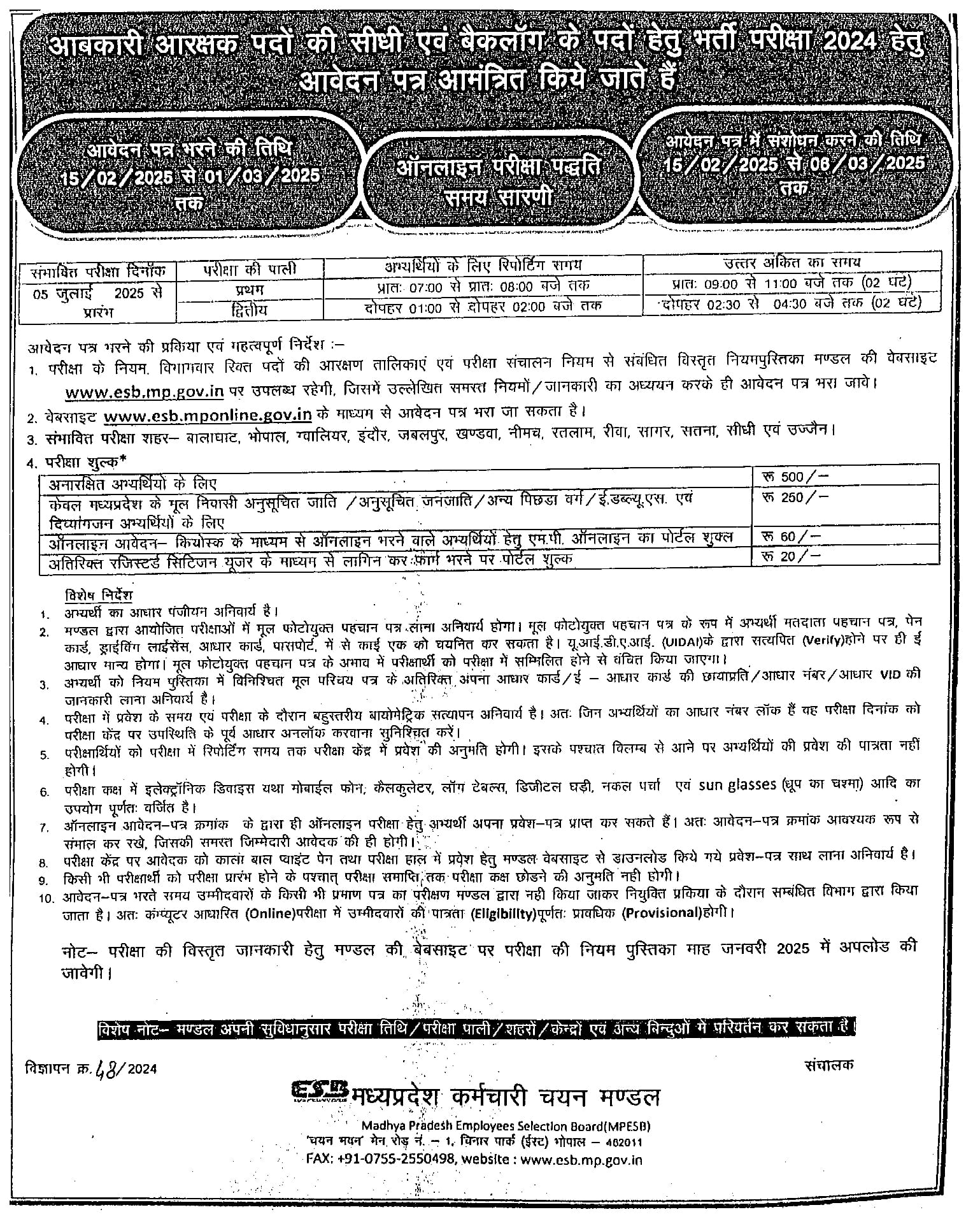 • Candidates are advised to confirm from the MPESB official website.