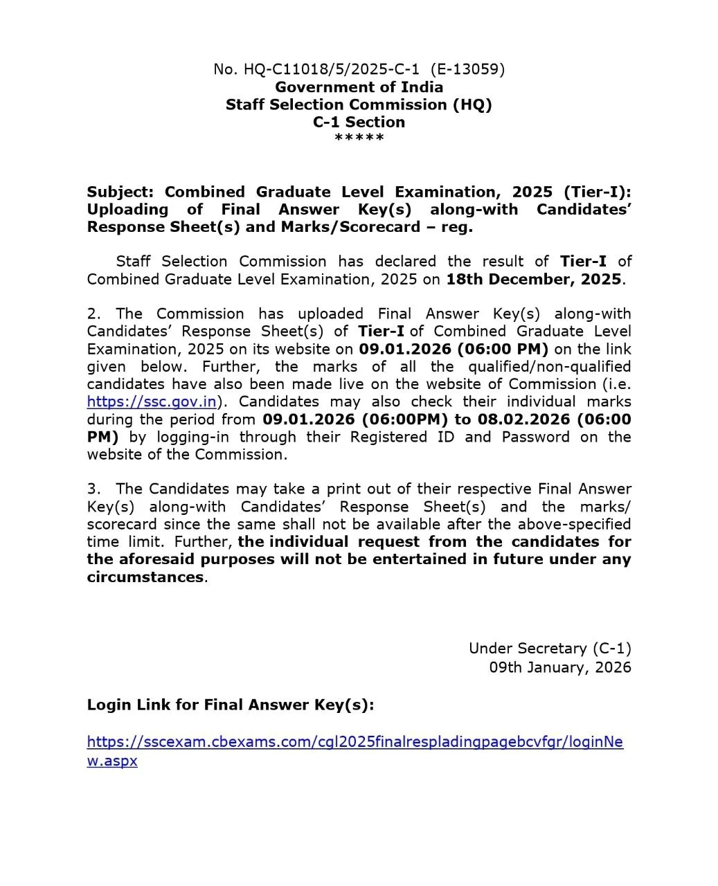 - Candidates are advised to confirm from the SSC official website.